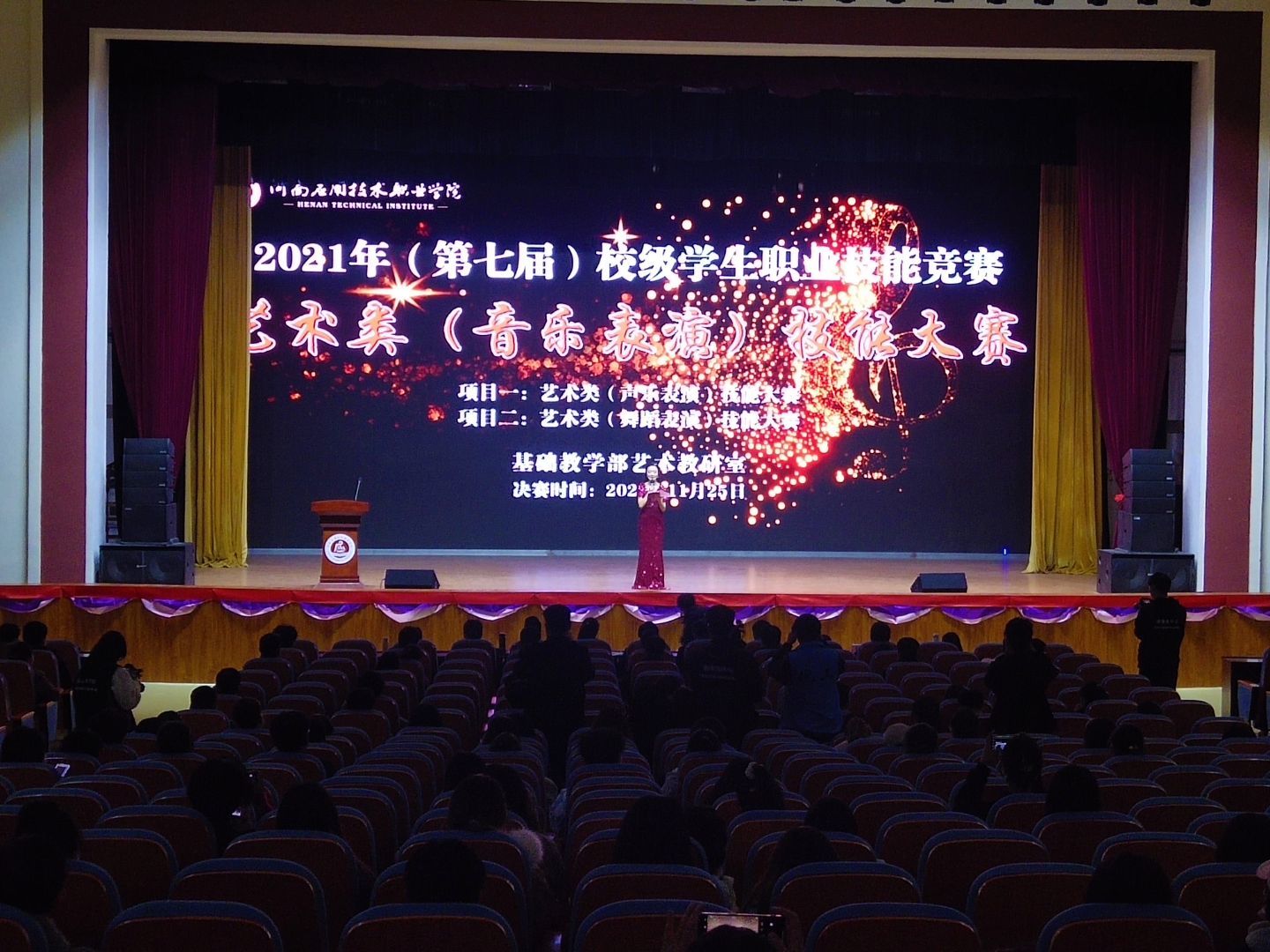 为营造积极向上、健康文明的校园文化气氛,全面提高学生自我表现力、审美力和创造力,为学生提供展示自己才华的舞台。2021年11月25日下午5时,Beat365官方网站赵欣同学在大礼堂参加第七届校学生职业技能竞赛艺术类(音乐表演)技能大赛。