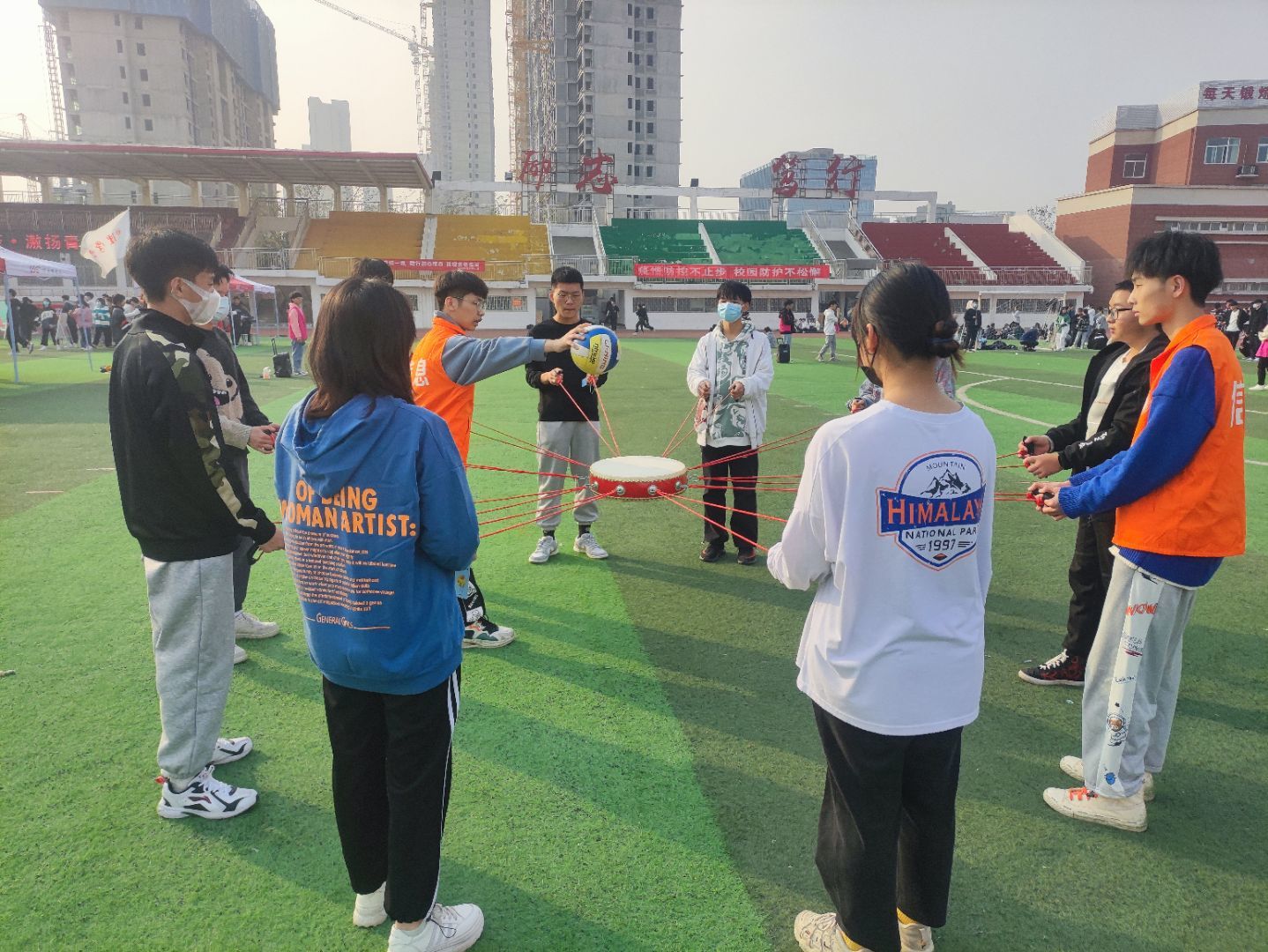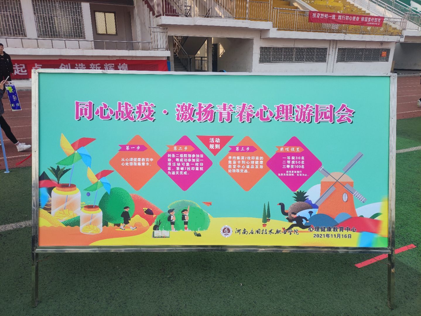 为给同学们营造一种共同关注心理健康、重视心理健康的氛围,促进大学生身心健康发展,加深同学们对沟通与合作的理解与认识,改善大学同学之间交流沟通贫乏的状况。 2021年11月16日下午12时50分Beat365官方网站在操场组织参加心理游园会。