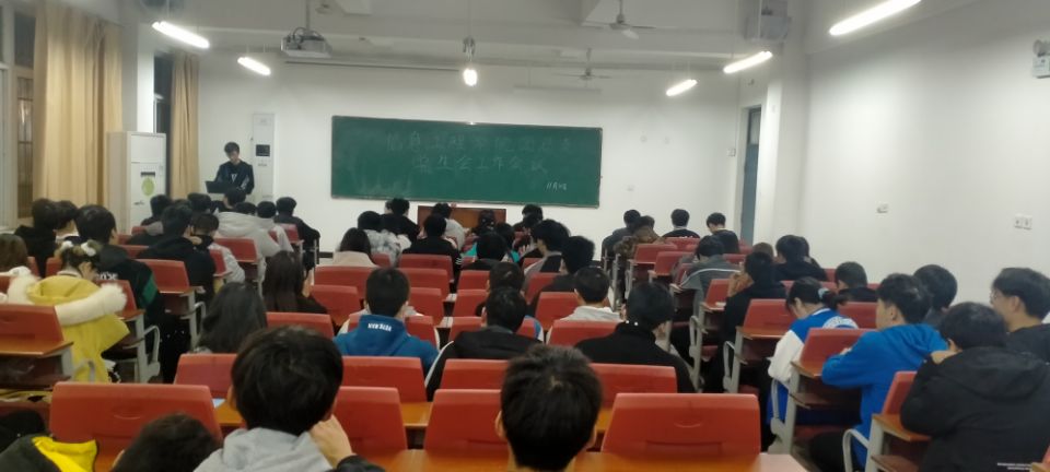 会议伊始,由学生会主席王斌向大家详细的讲解了各个部门即将要开展的活动以及要负责的工作。