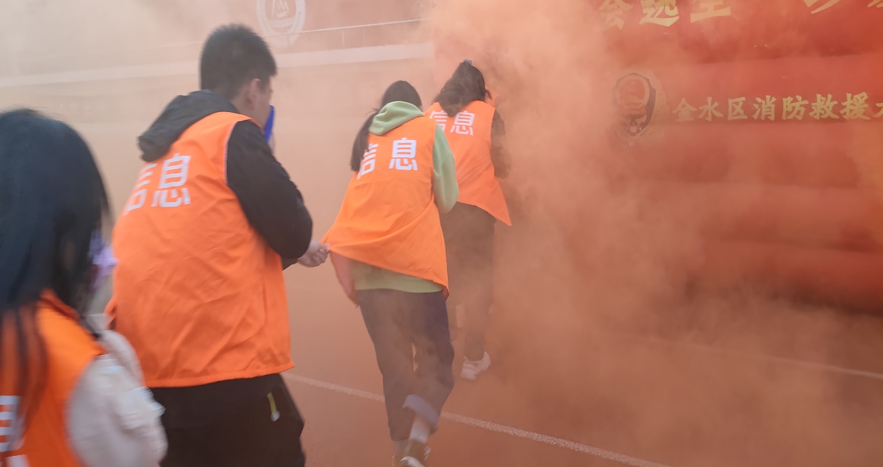 本次消防逃生演练Beat365官网特邀请了河南省应急救援协会安全专业委员会教员王平平参谋现场指导,主要从消防知识培训和现场模拟实操两个环节展开。活动开始前,Beat365官方网站参加人员按照逃生要求自带湿毛巾在学生会负责人的带领下有序地到达指定地点。首先教员为大家讲解进了入逃生屋的注意事项和消防安全知识,随后,参训人员在教员的现场指挥下按秩序进入了“消防逃生体验屋”,同学们用湿毛巾捂住口鼻,弯腰按照规定的路线,安静快速地往安全地区撤离,真切体验了在狭小黑暗的空间里发生火灾后进行疏散逃生和自救的方式。