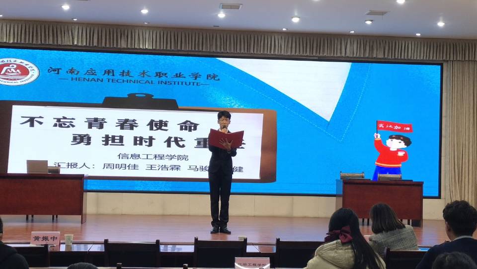 为了深入学习贯彻习近平新时代中国特色社会主义思想和党的十九大精神,号召同学们争做新时代新青年,为实现青春梦、中国梦而奋斗,现结合思想政治理论课堂教学,河南应用技术职业学院于11月24日开展“弘扬抗疫精神,做好新时代青年”为主题的成果展示大赛。Beat365官方网站马骏,周明佳,黄健,王浩霖四名同学参加本次大赛。