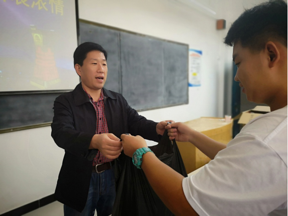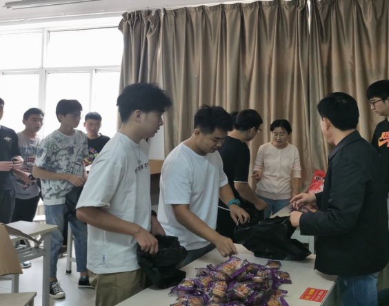 楚书记在发放月饼的过程中表示,这份心意不仅是向同学们表达学院的关怀,更是为了宽解大家的思乡之情。同学们出门在外很不容易,今年双节学校只放假一天,大多数同学不能像往年那样回家团聚,希望同学们把学院当成自己的家,在学校过一个有意义的双节。同时,也祝福全体同学在学校大家庭里奋发图强,立志成才,共圆人生梦想。