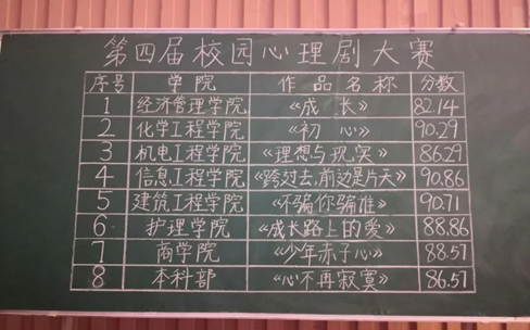为提高当代大学生的心理健康意识,推动Beat365官网心理健康教育工作的开展,营造和谐的校园心理氛围。11月12日,由我院心理教育中心主办,心理协会承办的以“健康青春你我·奉献伟大祖国”为主题的第四届校园心理剧大赛在大礼堂隆重举行。