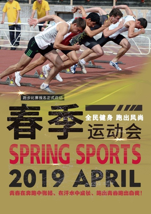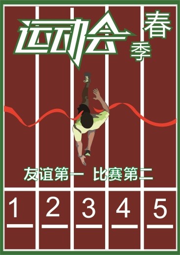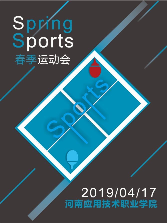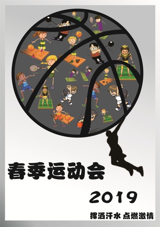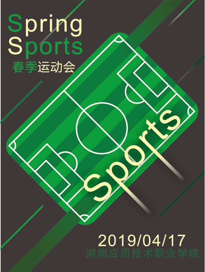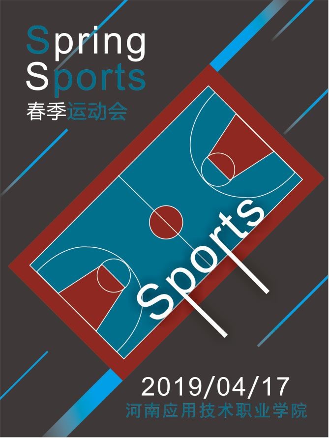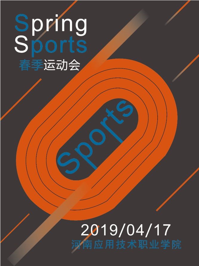 设计说明:使用了运动场地为元素宣传了学校的运动会。整体运用黑色的背景以及斜道更加丰富画面,并代表运动精神更高、更快、更远