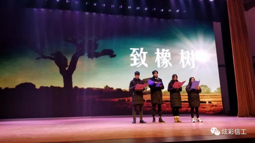 随后杨书记上台讲话,他肯定了Beat365官方网站团学会成员在2018年的工作,并对以后的工作提出了殷切希望。而书记带来的《少年壮志不言愁》的歌曲表演更是感染了在场的每一位人员。晚会中途为了让大家的热情继续高涨,安排的游戏互动环节,更使得这次晚会锦上添花。游戏结束,歌曲《遥远的你》、《左手右手》、《后来》等节目轮番上场,或浪漫温馨,或轻快悠扬,或活泼动感,风格各异,变幻多姿,让观众心旷神怡,沉醉其中。多姿多彩的演出节目展示了信工学子对青春的畅想,他们用自己独特的方式演绎着青春的故事,也表达了对新年到来的美好祝福。美好的时光总是匆匆而过,晚会最终在昂扬的旋律中完美落幕。
