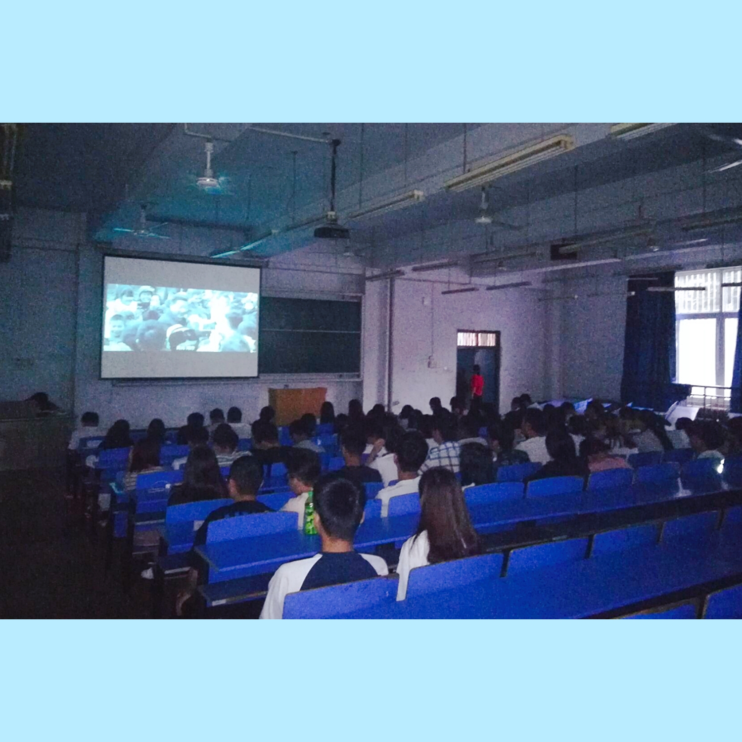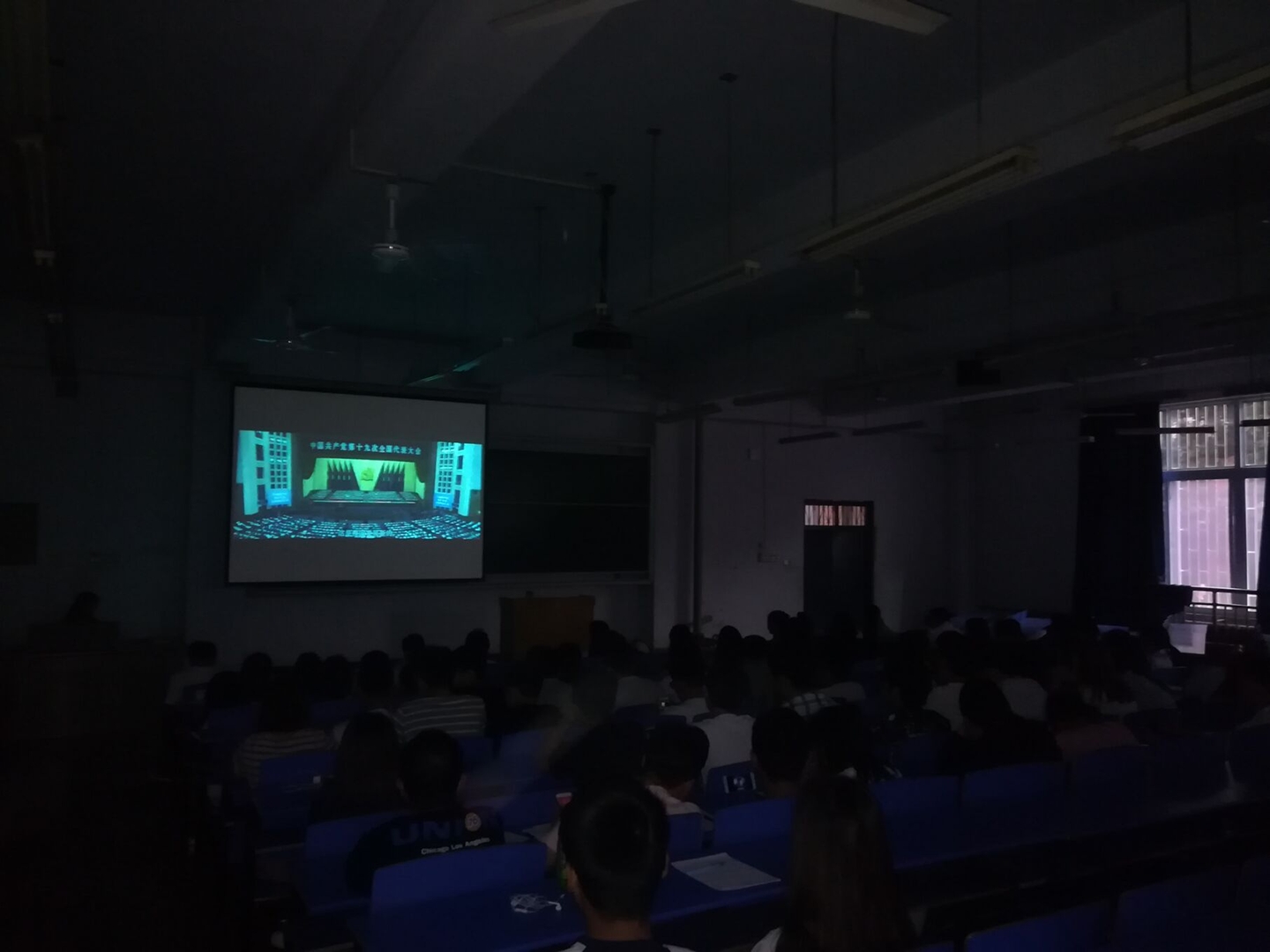 下午19:00,在团学会成员的组织下,同学们有序进入B101教室准备观影。伴随着气势恢宏的背景音乐,《厉害了,我的国》正式开播。影片记录了党的十八大以来中国的发展和成就,以及十九大报告中中国特色社会主义进入新时代这一重大论述。回首砥砺奋进的五年时光,无数的光辉时刻被所有中国人铭记:“振华30号”完成港珠澳大桥的最后吊装,“复兴号”动车组率先实现350公里时速的运营,首个太空实验站“天宫二号”如期升空,“南水北调工程”完成通水运行...,《厉害了,我的国》正是以中国历年来尤其是近五年来的伟大发展为内容,将这些恢弘工程和背后的人与事娓娓道来。