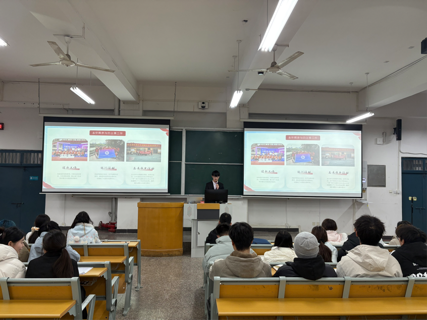 会议的最后,杨帆书记上台致词,他对上述工作汇报给予肯定,并针对汇报中提及的问题短板,提出针对性的改进建议,同时鼓励学生会成员正视不足、主动作为,以精益求精的态度优化工作方法,以凝心聚力的姿态夯实服务基础,让学生会成为学院联系学生的坚实桥梁。