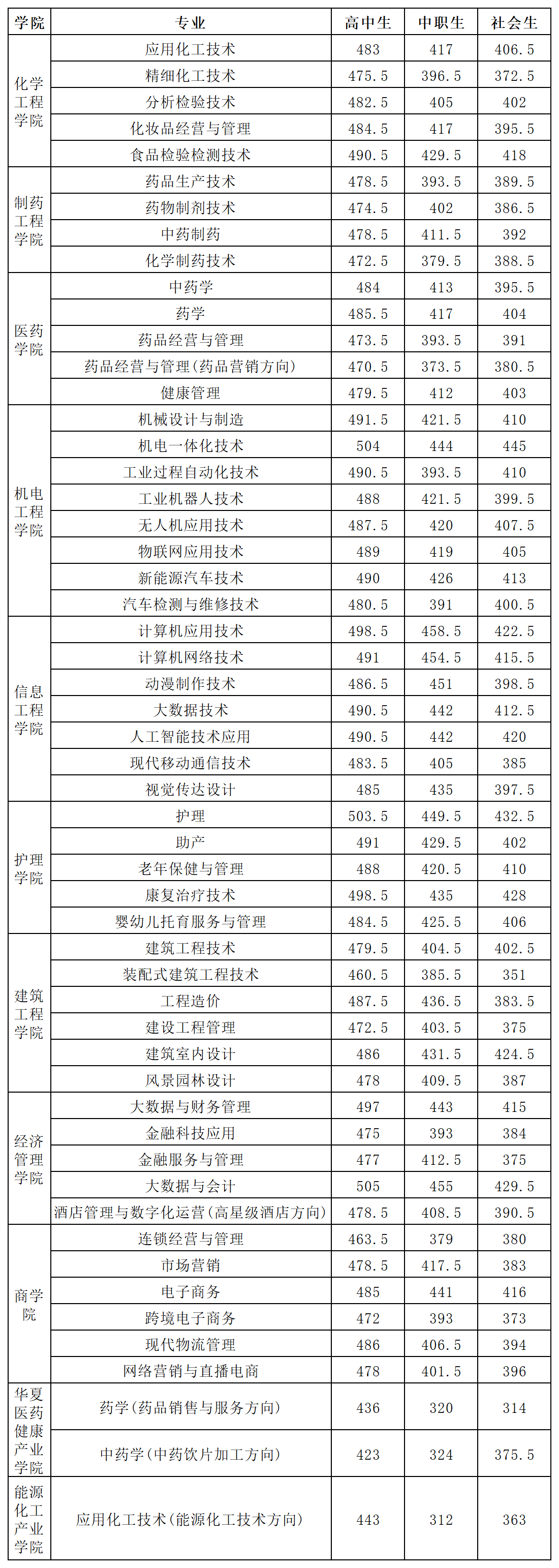 2024年单独考试招生各专业拟录取最低分