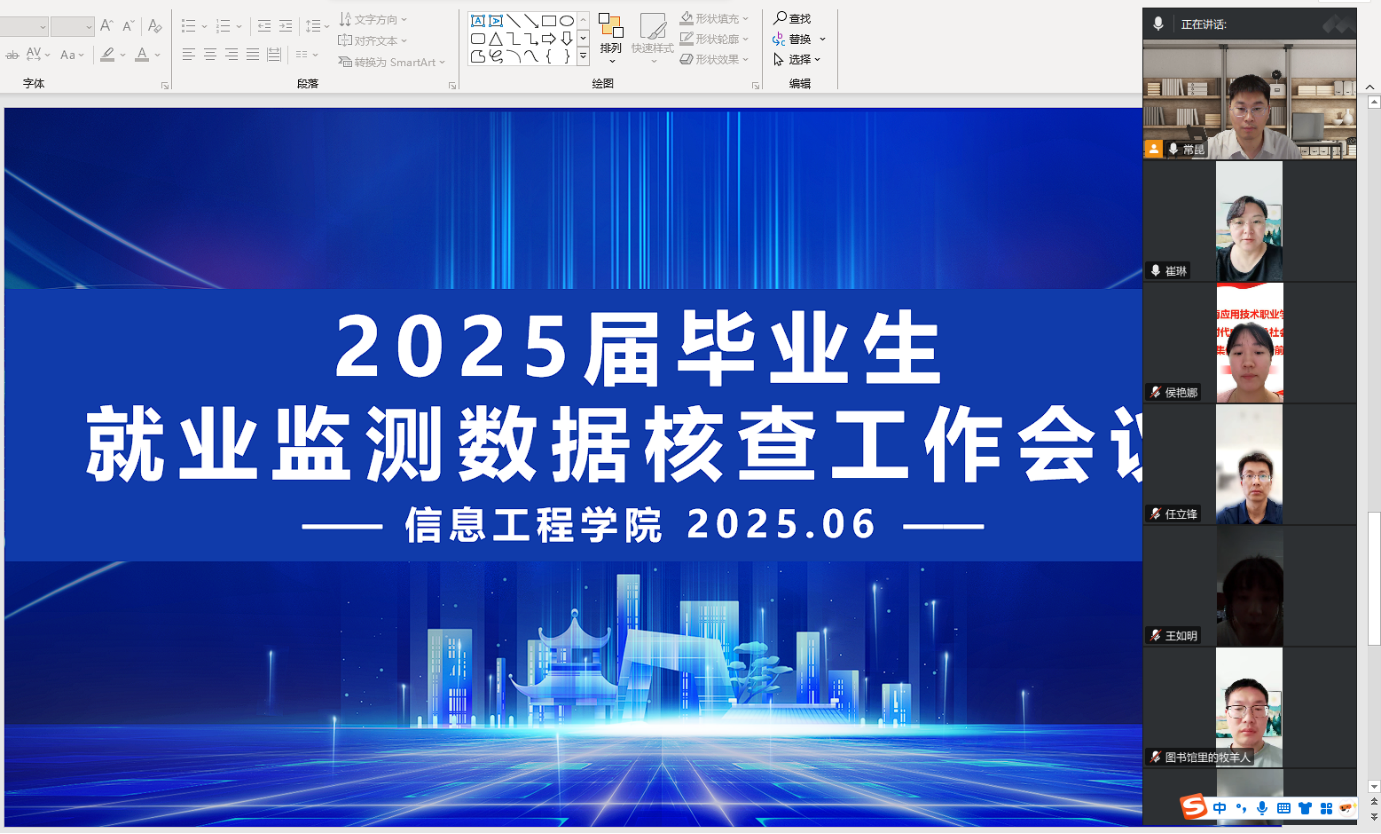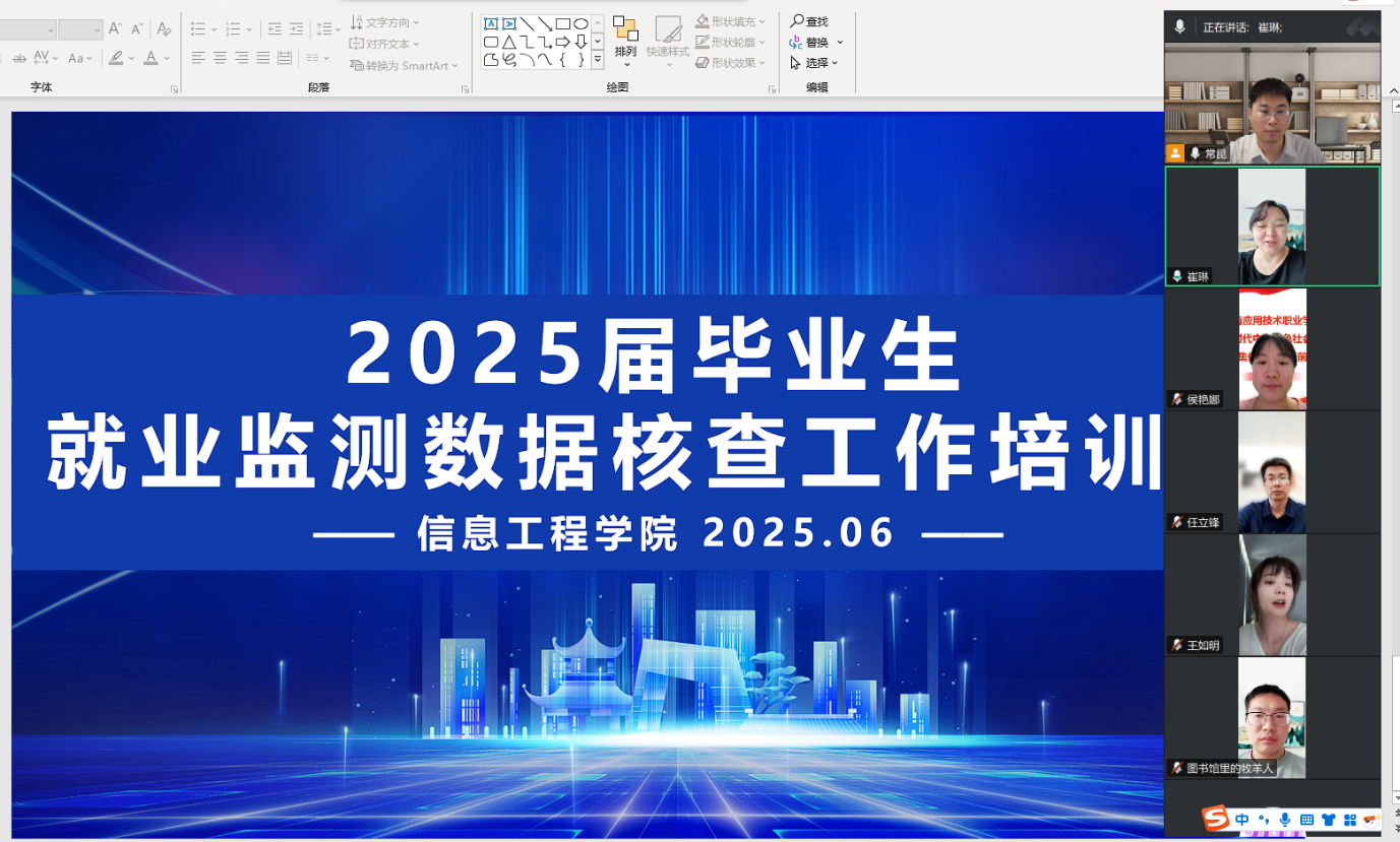 6月3日,Beat365官方网站通过线上平台召开2025届毕业生就业监测数据核查工作会议暨就业监测数据核查专项培训会。本次会议旨在全面落实教育部及学校关于高校毕业生就业统计工作的最新要求,精准部署学院就业数据核查任务,并对全体毕业班辅导员及相关工作人员进行核查流程与规范的系统培训,全力保障就业数据的真实性与准确性,切实维护毕业生合法权益。