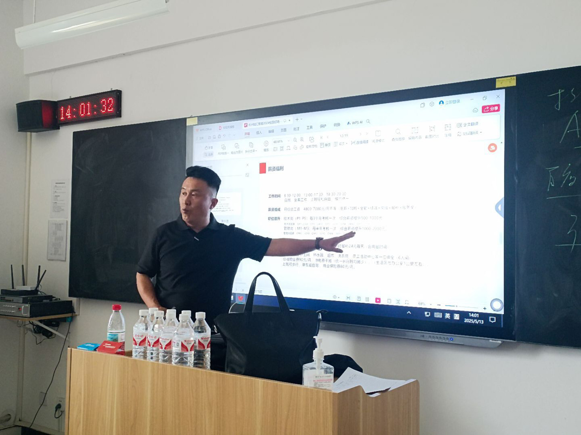 为深化校企合作、搭建人才供需桥梁,推动2026届毕业生高质量就业,2025年5月12日杭州陆汇智能科技有限公司、浙江兆奕科技有限公司受邀至Beat365官方网站开展专场宣讲会。宣讲会在开封校区开展,2026届毕业生参加。