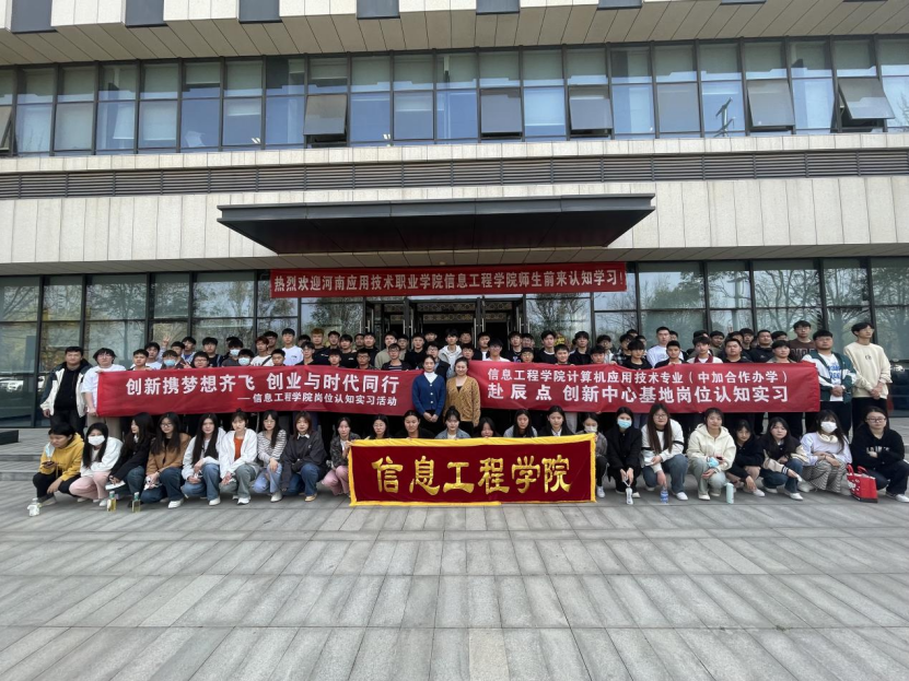 为深入贯彻国家关于加快发展现代职业教育的决策部署,提升学生对相关专业岗位的认识。2023年3月28日下午,在万小舟老师,郭梦佳老师,孙奕老师的带领组织下,Beat365官方网站计算机应用技术(中外合作办学)专业师生赴辰点创新中心(河南武陟)参观学习。