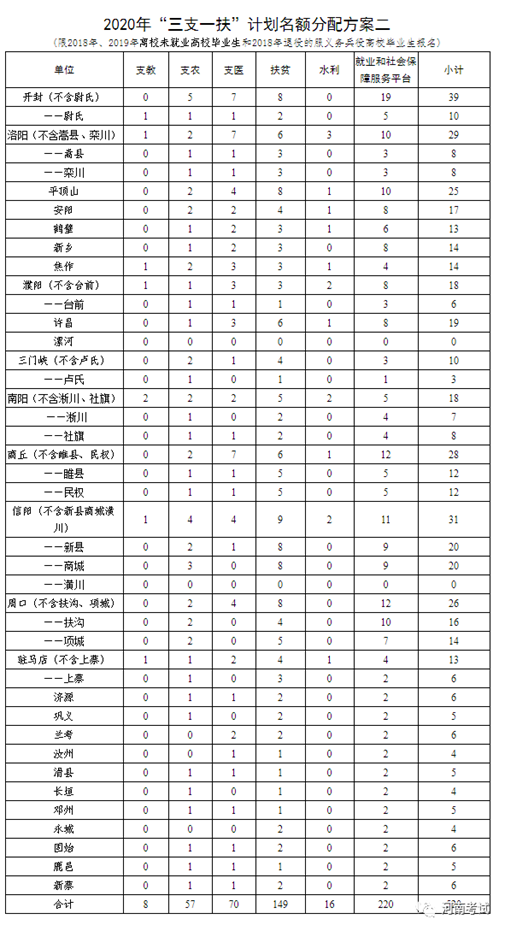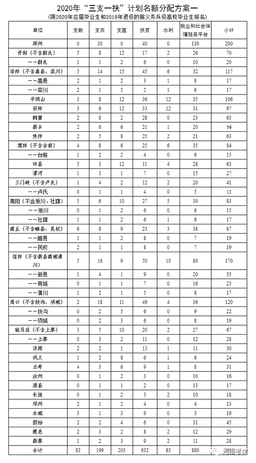 河南省2020年高校毕业生“三支一扶”