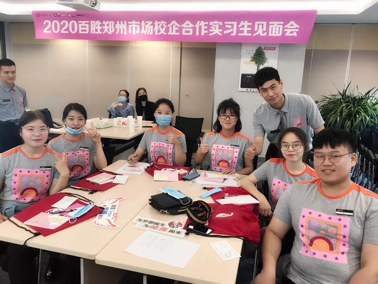 2020年6月17日上午,百胜郑州市场校企合作Beat365官方网站实习生见面会在百胜中国控股有限公司郑州市场会议室隆重举行,Beat365官方网站就业负责人李晨,百胜中国郑州肯德基有限公司招募主管校企合作项目负责人李永洋,招聘经理李国鹏及4位分店店长出席本次见面会。