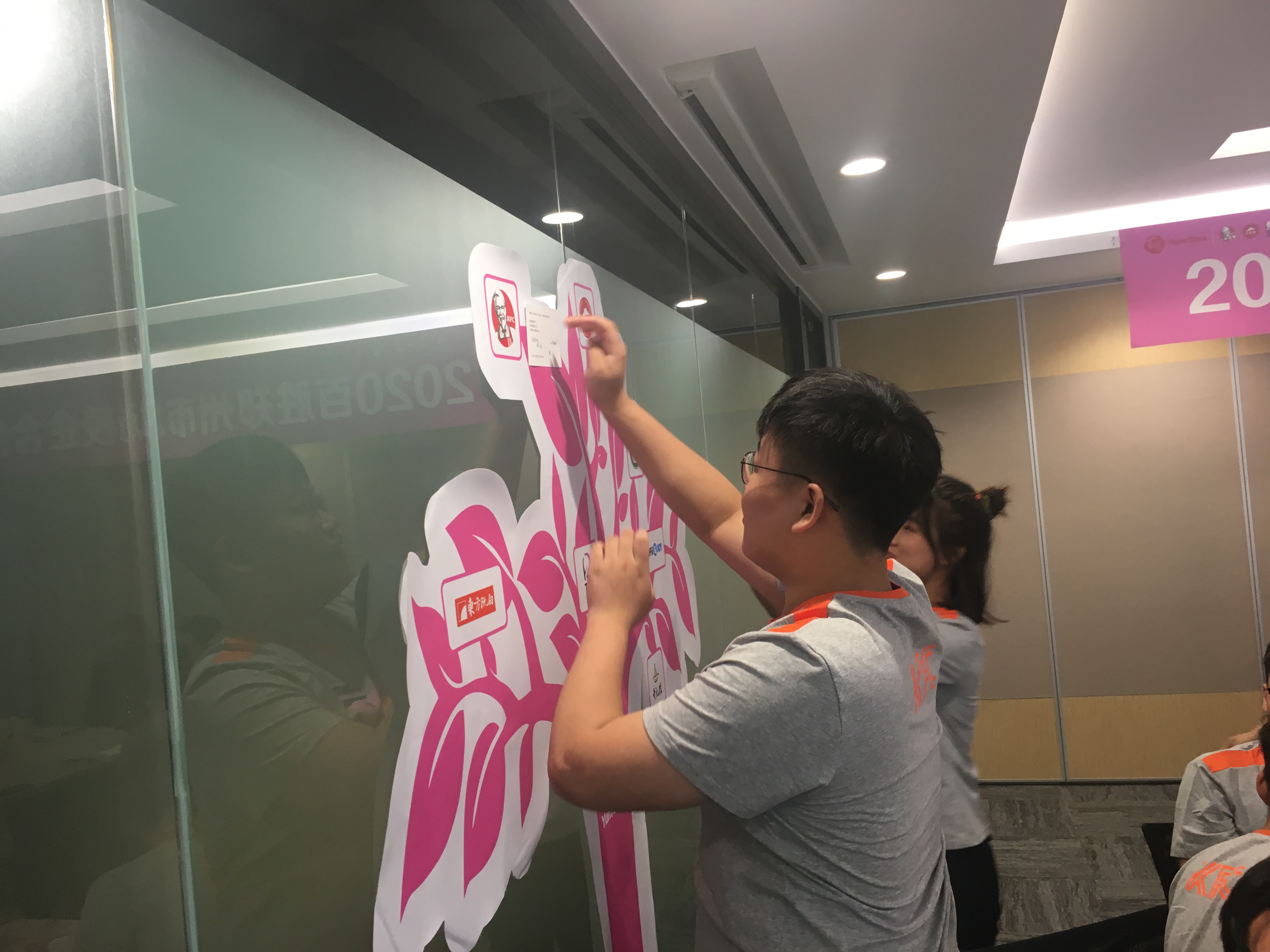 最后,颇有仪式感的环节到了。每位同学都领到了一个专属大礼包,写下自己的职业心愿贴到许愿墙上,并由各店的店长亲自为同学们佩戴名牌,从此正式成为“肯德基”人。
