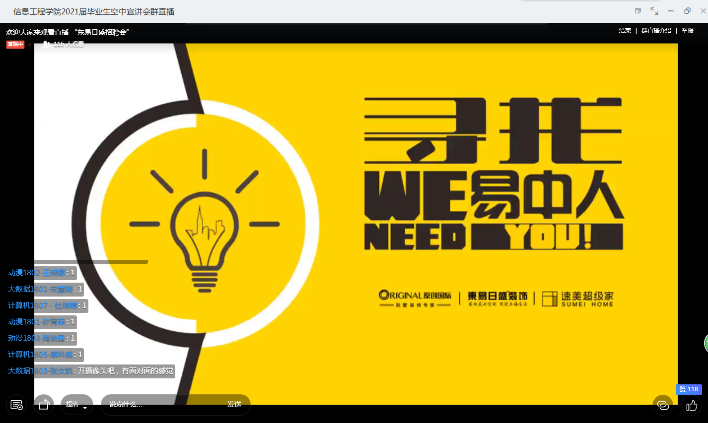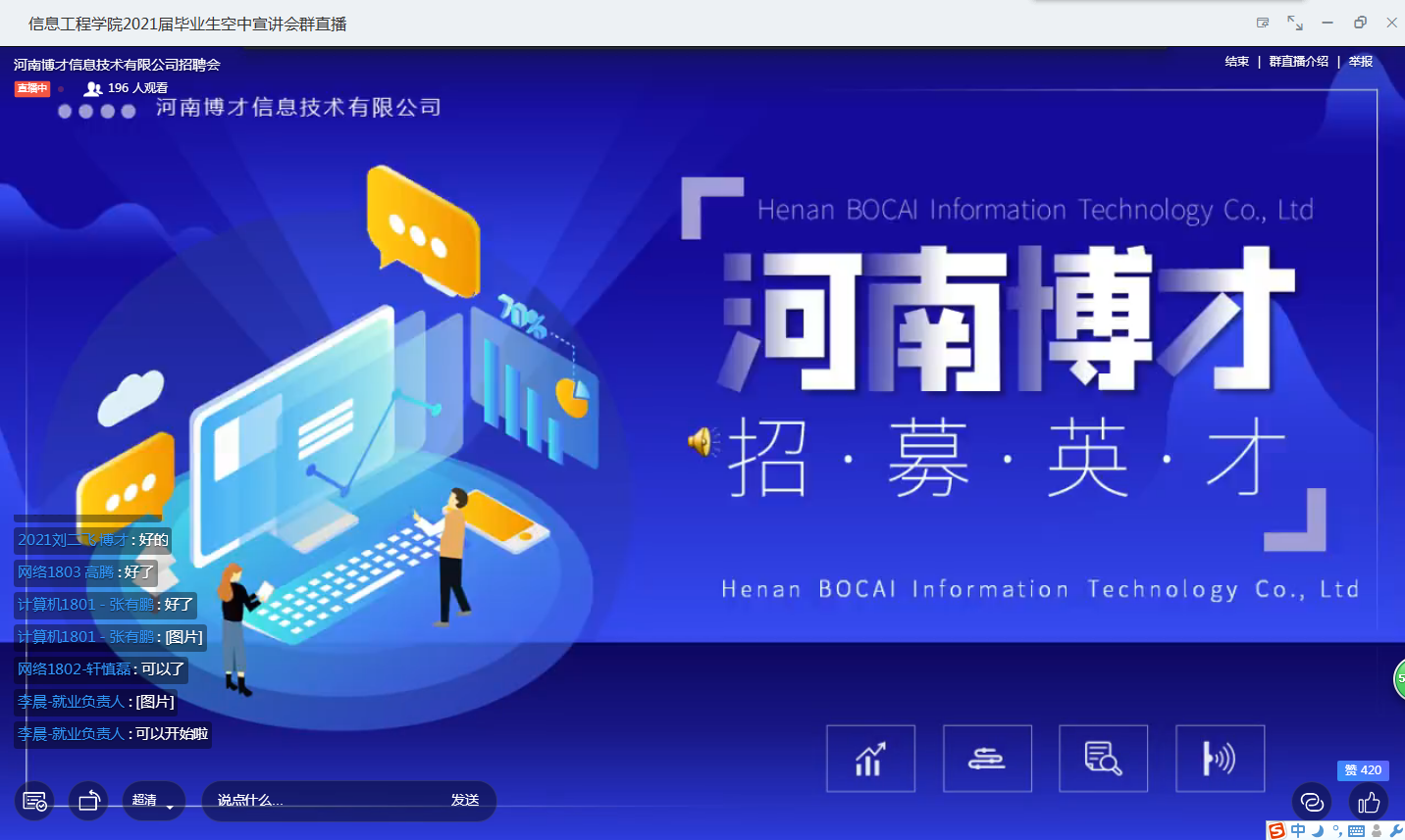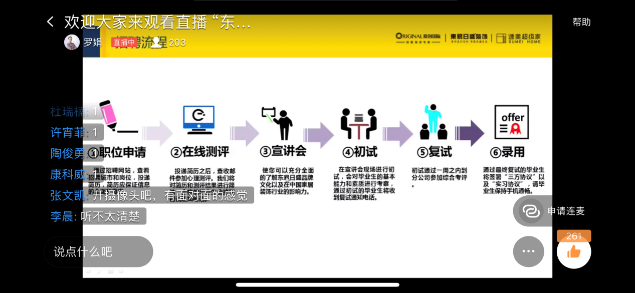Beat365官方网站”空中宣讲会“开播近一周以来,反响热烈,日平均3场,为同学们疫情下的求职就业提供了有力保障。5月21日、5月22日两天更是每天4场连播,涉及“网络通讯”、“装饰家居”、“教育科技”、“数字产业园”等多个方面。