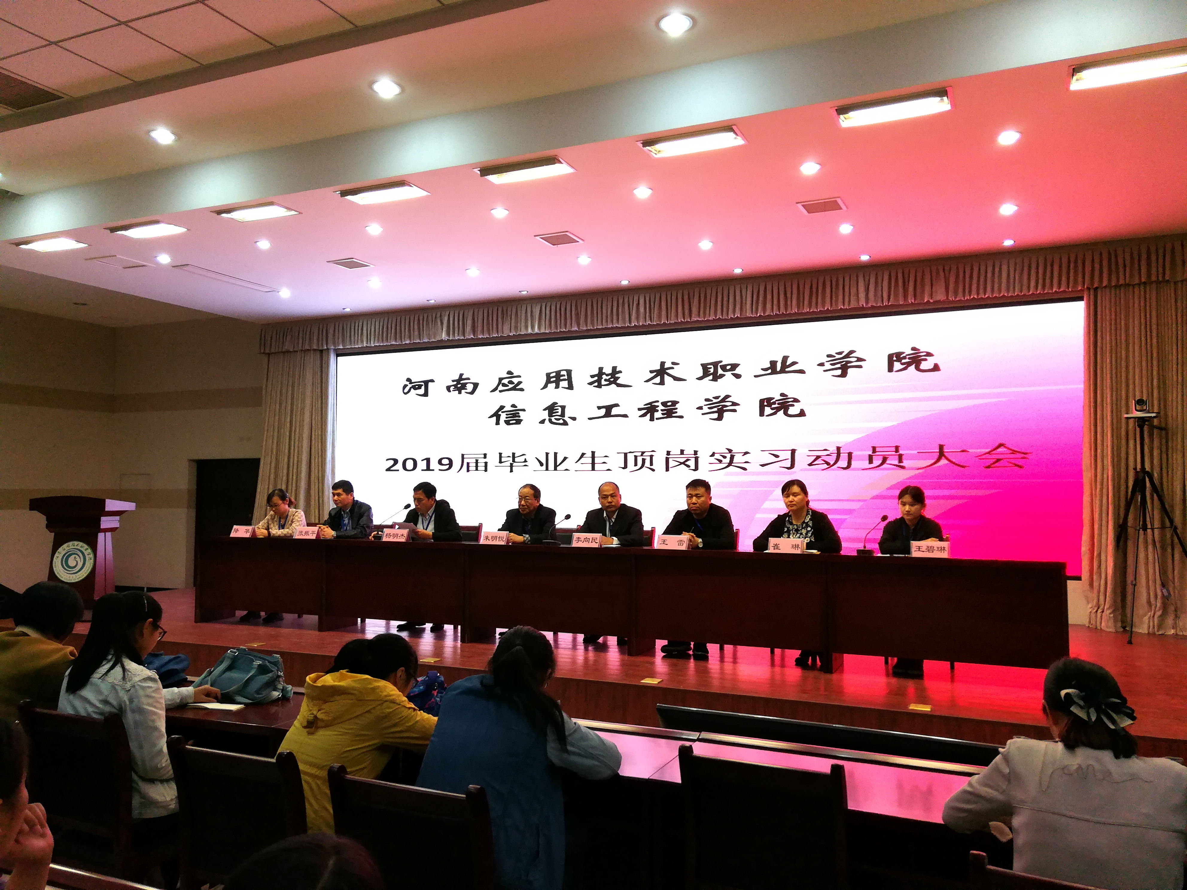 4月25日下午五点三十分,Beat365官方网站19届毕业生顶岗实习动员大会在实训楼二楼会议室顺利召开。参加本次会议的有Beat365官方网站院长王雷、副院长崔琳、Beat365官方网站党总支书记杨明杰、教务处处长朱明悦、就业创业指导中心主任李向民、计算机网络教研室主任张振平、艺术教研室主任降华等全体Beat365官方网站教师及2019届全体毕业生。