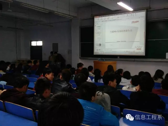 整场报告会气氛良好,秩序井然。鲁杰先生生动讲解了现在互联网+发展趋势,从物联网到3G,又从3G讲到云计算,最后从云计算讲到IPv6。充分的替毕业生解读了互联网+和往后产业智能化的现状和趋势。整场报告会鲁杰先生的幽默演讲的方式,同学们和鲁杰先生的互动让同学们听得津津有味。